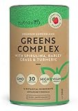 Superfood Blend Greens Complex con Espirulina, Hierba de Cebada y Cúrcuma - Hecho en el Reino Unido por Nutravita